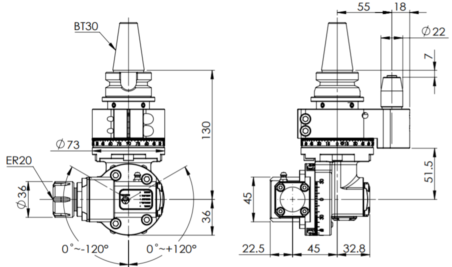 ◎?BT30-ER20 Light Angle Head-Universal (AHL Type)