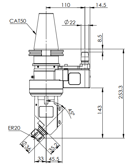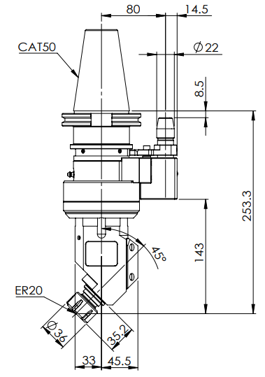 ◎?CAT50-ER20 45° Angle Head (AHD Type)