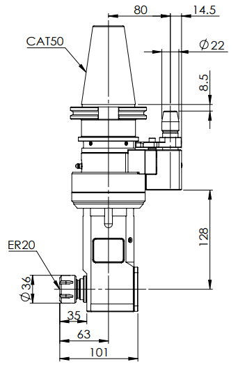 ◎?CAT50-ER20 90° Angle Head-Longer (AHD Type)
