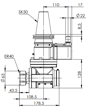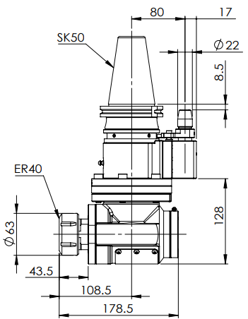 ◎ SK50-ER40 90° Angle Head (AHB Type)